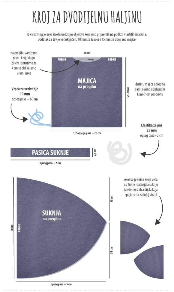 - 1,9-2,7 m viskoznog jerseya (ovisi o dimenziji kroja)