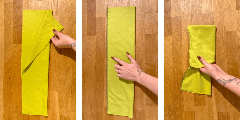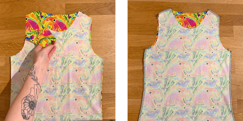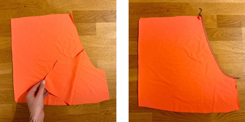 Prednji i stražnji dio zatim složimo lice na lice, poravnamo bočne šavove i zašijemo ih.