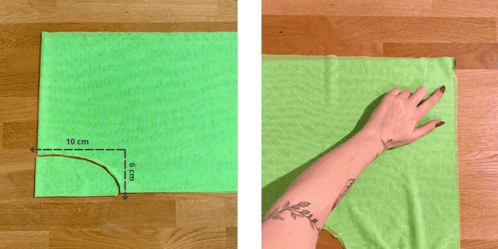 Izrez oko vrata označimo u kutu gdje se tkanina preklapa i gdje je preklopljena sa svih strana. U kutu napravimo kratak sigurnosni šav, tek toliko da se mrežica tijekom kretanja ne pomiče ili ne sklizne.